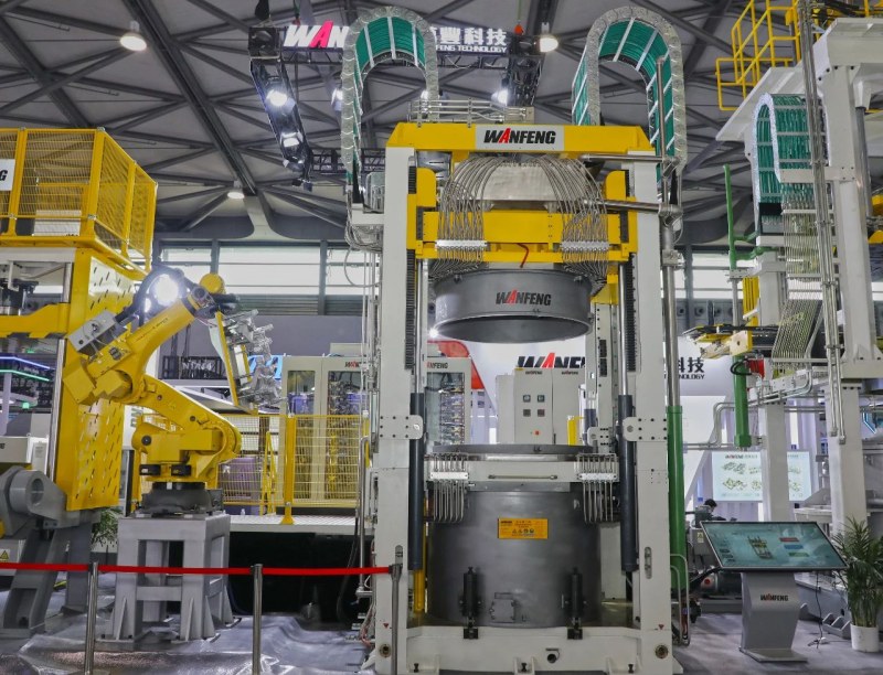 公司總經(jīng)理吳軍出席開幕儀式 萬豐科技作為行業(yè)領(lǐng)先的熱加工智能裝備及自動化系統(tǒng)生產(chǎn)和服務(wù)商,帶來最新研發(fā)的新一代差壓鑄造機(jī)亮相N1館A33展位,另推出有色合金鑄造一體化解決方案成套裝備及關(guān)鍵技術(shù)。