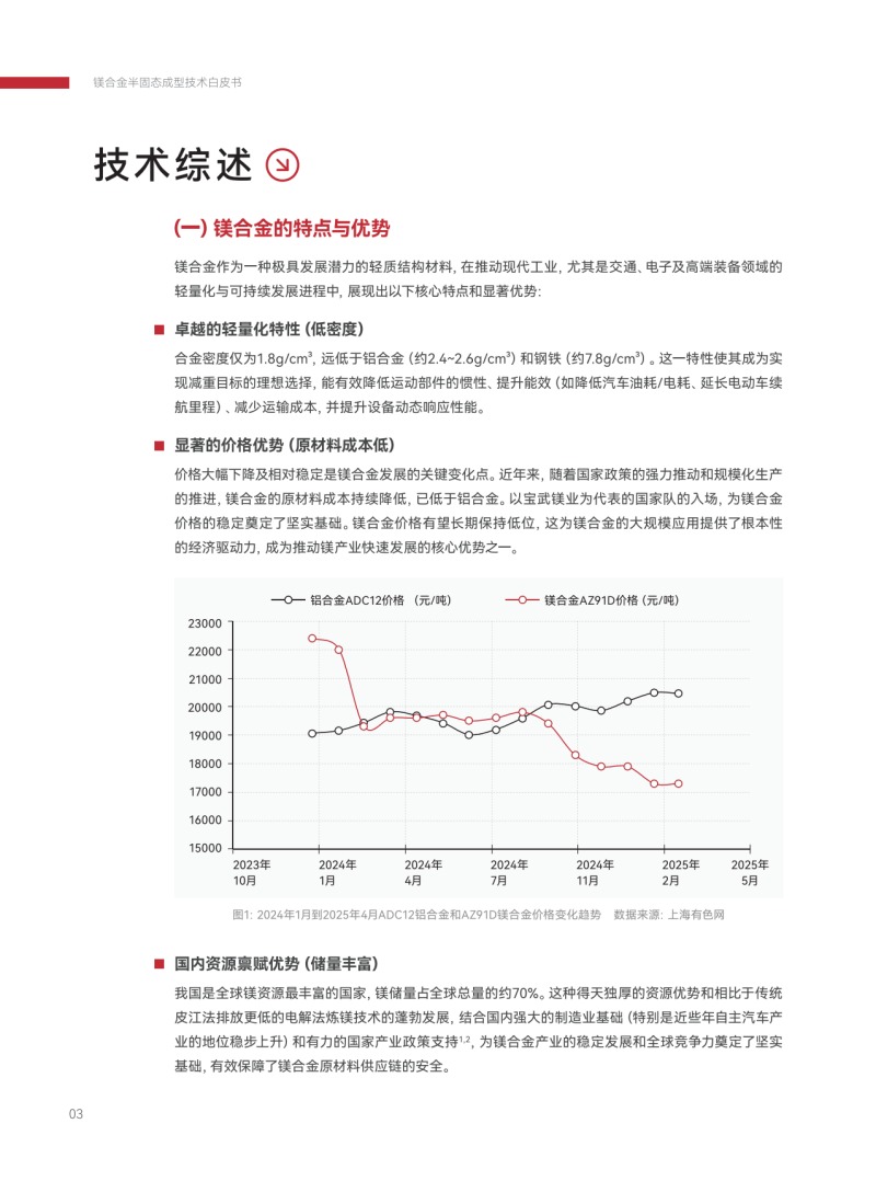 該白皮書(shū)系統(tǒng)梳理了鎂合金半固態(tài)成型的技術(shù)的優(yōu)勢(shì)、挑戰(zhàn)、市場(chǎng)格局與創(chuàng)新實(shí)踐,剖析數(shù)字技術(shù)在該領(lǐng)域的關(guān)鍵支撐作用與未來(lái)融合趨勢(shì),為產(chǎn)業(yè)界把握技術(shù)發(fā)展脈絡(luò)、推動(dòng)輕量化制造升級(jí)提供了重要參考。