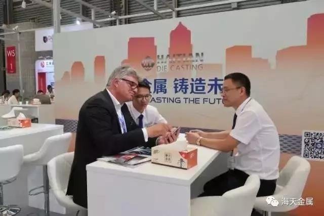 海天金屬營銷總監洪劍文先生與客戶洽談交流 海天HDC系列壓鑄機自上半年推向市場以來,憑借“可靠、耐用”的產品理念,以及海天品牌強大知名度,迅速獲得市場和客戶的認可,取得喜人的銷售業績。本次展會,海天金屬全國各地銷售商業務團隊,與來自海天金屬寧波總部的營銷、服務、工程部門同事匯聚上海,強大陣容的參展團隊,為國內外專業觀眾和買家提供現場講解和服務。