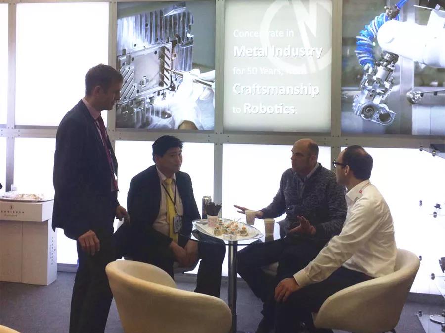 任賽良先生(左一)與國(guó)際客商 賽維達(dá)展臺(tái)