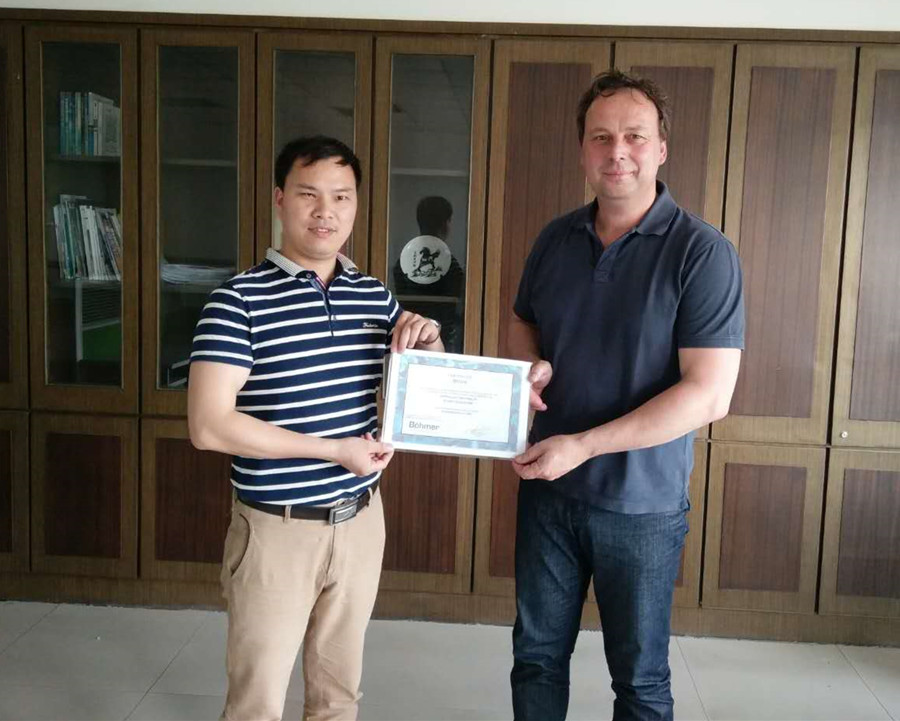 ![]() 德國(guó)博馬公司市場(chǎng)總監(jiān)Dirk Könsgen向陳翠彪先生頒發(fā)區(qū)域分銷商授權(quán)證書(shū) 噴涂是壓鑄工藝的最重要環(huán)節(jié)之一,高效率、高質(zhì)量噴涂對(duì)于壓鑄生產(chǎn)至關(guān)重要。微量噴涂是模具噴霧的一個(gè)發(fā)展方向。在『CHINA DIECSTING 2018中國(guó)壓鑄展』上,安徽博聯(lián)自動(dòng)化工程技術(shù)有限公司將展示其技術(shù)領(lǐng)先的微量噴涂技術(shù)及應(yīng)用解決方案,這也是來(lái)自德國(guó)的成熟噴涂技術(shù)。 “我們是德國(guó)博馬(BÖHMER)在中國(guó)區(qū)域的唯一合作公司,此次展示的微量噴涂技術(shù)或者Hybird噴涂,在德國(guó)大眾、奧迪、COSMA、GF等工廠已經(jīng)有成熟的應(yīng)用,” 安徽博聯(lián)自動(dòng)化工程技術(shù)有限公司(下稱“博馬中國(guó)”)副總經(jīng)理陳翠彪先生表示:“一直以來(lái),大家對(duì)噴涂脫模劑的消耗、時(shí)間節(jié)拍更加敏感,希望最大限度的降低消耗和減少節(jié)拍,我們?cè)谶@方面很早就投入研究。” 據(jù)介紹,博馬中國(guó)將現(xiàn)場(chǎng)展示噴涂技術(shù)、噴涂工裝以及微量噴涂應(yīng)用,專業(yè)觀眾可以通過(guò)閥門的控制來(lái)啟動(dòng)和停止噴涂過(guò)程,感受微量噴涂的良好霧化效果。此次微量噴涂的現(xiàn)場(chǎng)應(yīng)用展示,將是其在全新微量噴涂的技術(shù)展示,亮點(diǎn)集中體現(xiàn)高品質(zhì)的霧化效果上。