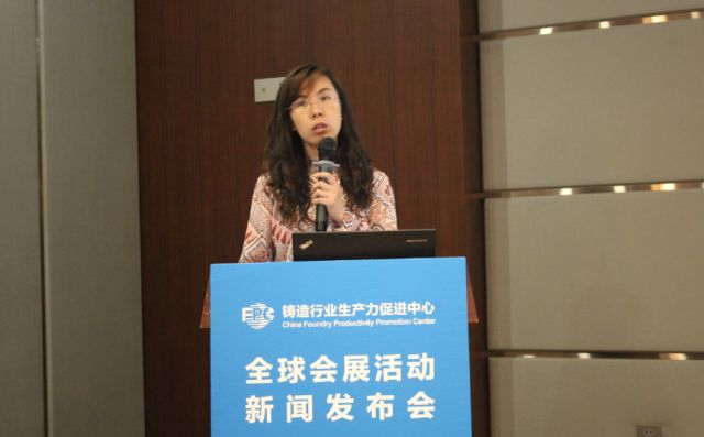 ▲ 余永吉先生 紐倫堡會展(上海)有限公司項(xiàng)目總監(jiān)馮琦女士說道:“在多年的精誠合作中,德國紐倫堡集團(tuán)與鑄造行業(yè)生產(chǎn)力促進(jìn)中心就如何更好地聯(lián)動全球壓鑄項(xiàng)目傾注了很多心血,所有項(xiàng)目都在不斷提升。” CHINA DIECASTING 中國壓鑄展與EUROGUSS歐洲壓鑄工業(yè)展、ALUCAST 印度鋁工業(yè)展、EUROGUSS goes to Mexico墨西哥壓鑄工業(yè)展有效互動,共享資源,相互促進(jìn)。