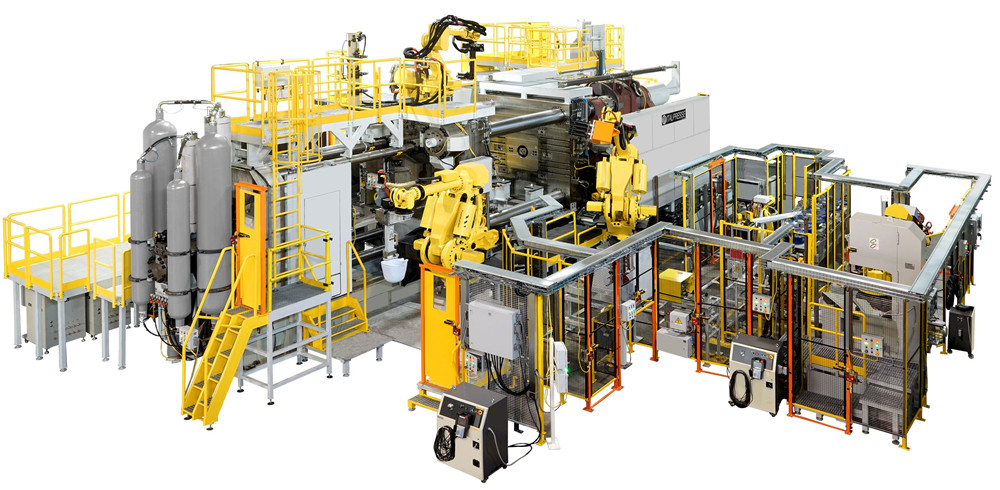 ![]() 自動壓鑄島 汽車輕量化,鋁、鎂合金等有色輕金屬合金鑄件替代傳統鑄鐵件,是大勢所趨。在鋁、鎂合金熱成型工藝中,高壓鑄造、低壓鑄造、重力鑄造是應用最廣泛的壓鑄工藝。意特佩雷斯高斯(Italpresse-Gauss)是一家為以上三種壓鑄工藝提供全方位輕合金鑄造設備及自動化方案的供應商。 在即將開幕的“CHINA DIECASTING 2018中國壓鑄展”上,意特佩雷斯高斯將展示其一站式輕合金鑄造技術及生產解決方案。意特佩雷斯高斯由意特佩雷斯Italpresse與高斯Gauss合并而來,高斯Gauss主要為客戶提供重力鑄造設備、低壓鑄造設備以及自動化周邊設備,意特佩雷斯Italpresse主要提供款式多樣、技術領先的壓鑄機。