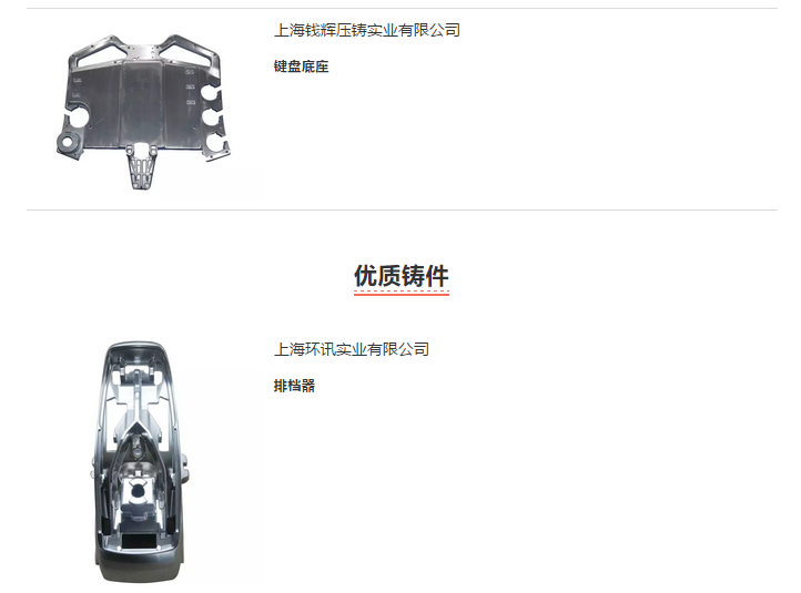 作為展會同期的重要品牌活動,“2018中國優質壓鑄件評選及展示”與海內外知名行業組織,如IZA國際鋅協會、SPOTLIGHTMETAL、中鑄科技等單位大力合作,共同邀約全球優質壓鑄件企業,同時特聘國內外資深專家組成評委會為鑄件做精彩點評! 2018年活動全面升級,首次按照材質分類評選,將產品分為鋁合金壓鑄件、鎂合金壓鑄件、鋅合金壓鑄件三大類分別進行評選。