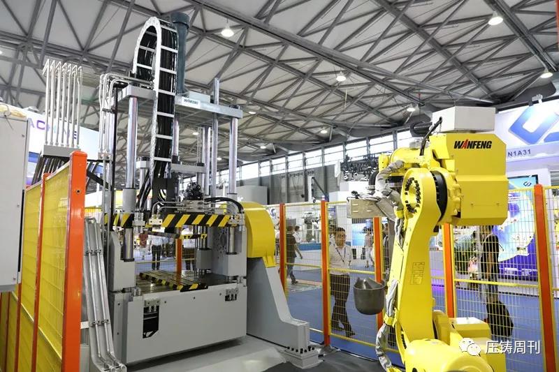 萬豐科技差壓鑄造機(jī) “萬豐科技是《差壓鑄造機(jī)技術(shù)條件》行業(yè)標(biāo)準(zhǔn)第一起草單位。在低壓(差壓)鑄造機(jī)領(lǐng)域已走在國內(nèi)的前沿,研制出了多種低壓、差壓、重力鑄造機(jī)。”吳軍先生表示:“去年,萬豐推出的差壓鑄造機(jī)是我國首臺推向市場的差壓鑄造機(jī),填補(bǔ)了我國差壓鑄造機(jī)的空白,也將改變這一領(lǐng)域長期依賴進(jìn)口的局面。如今,萬豐差壓機(jī)已經(jīng)實(shí)現(xiàn)了量產(chǎn),在本次展會上,我們就收獲了2臺差壓機(jī)訂單。” 多套智能自動化裝備集中亮相 展會現(xiàn)場,萬豐科技展示了其在鑄造自動化領(lǐng)域最新的研發(fā)成果和實(shí)施案例,包括自主研發(fā)的智能壓鑄生產(chǎn)單元、伺服傾轉(zhuǎn)式重力機(jī)及澆鑄系統(tǒng)、伺服油壓切邊機(jī)、機(jī)器人去毛刺單元悉數(shù)亮相。