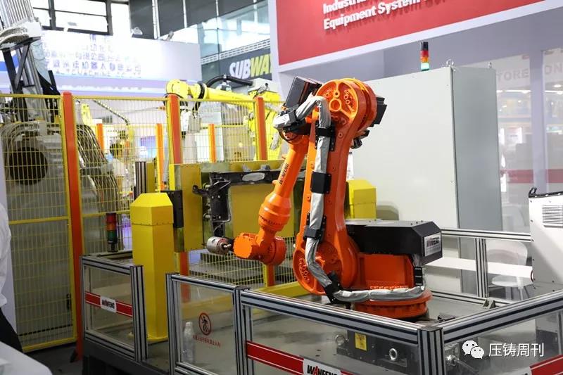 萬豐科技機(jī)器人去毛刺單元 機(jī)器人去毛刺單元主要針對鎂合金、鋁鑄件毛刺清理工作,產(chǎn)品放置伺服旋轉(zhuǎn)工作臺,旋轉(zhuǎn)進(jìn)入去毛刺工房內(nèi),機(jī)器人通過離線軌跡規(guī)劃,來完成產(chǎn)品的飛邊、毛刺去除工作,有效解決人工打磨操作困難,打磨效率低,良品率低的問題。 創(chuàng)立于1997年的CHINA DIECASTING 中國國際壓鑄展是專注壓鑄全產(chǎn)業(yè)鏈集中展示、交流合作的全球化高端平臺。外部資源引進(jìn)、壓鑄產(chǎn)業(yè)的國際聯(lián)動及先進(jìn)的辦展理念將其打造成名副其實(shí)的全球壓鑄趨勢發(fā)布之地,行業(yè)精英匯聚之所。萬豐科技通過展會的良好平臺,加深與業(yè)界專家、客戶交流,致力于將萬豐科技打造成全球行業(yè)的領(lǐng)先品牌。