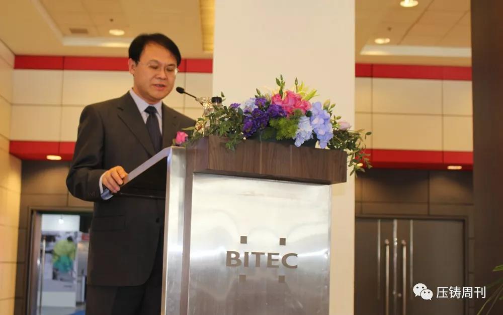 開幕現場 泰國曼谷,當地時間10時,主辦方還舉行了隆重的開幕儀式,沈陽鑄造研究所有限公司總經理唐驥先生致開幕詞、泰國鑄造協會副會長 Rungkamchorn Wannasai先生、泰國會展局展覽部總監(jiān) Kanokporn Damrongkul 女士分別致詞。中國機械工程學會工業(yè)爐分會理事易光先生、日本輕金屬通信社社長上島孝一先生、紐倫堡博覽集團國際壓鑄項目經理Christopher Boss先生、寧波模具行業(yè)協會秘書長張小巖先生、越南鑄造協會國際合作部主任Mike Luu博士、德-泰商會的副總Marius Mehner先生等各界嘉賓出席開幕儀式。