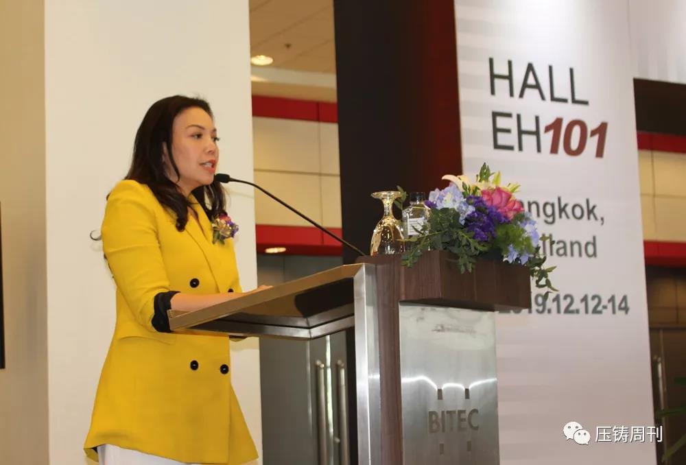 泰國會展局展覽部總監(jiān) Kanokporn Damrongkul 女士(Kelly) 致辭 本次展會參展企業(yè)有鑄造、壓鑄設備、熔煉、熱處理、工業(yè)爐、冶金設備、模具、表面處理、周邊設備等多個行業(yè)。其中,壓鑄、鑄造設備企業(yè)包括布勒(中國)機械制造有限公司、意特佩雷斯壓鑄設備(上海)有限公司、力勁機械國際有限公司、寧波宜科信機械有限公司、尚富工業(yè)股份有限公司、IDRA Srl等。