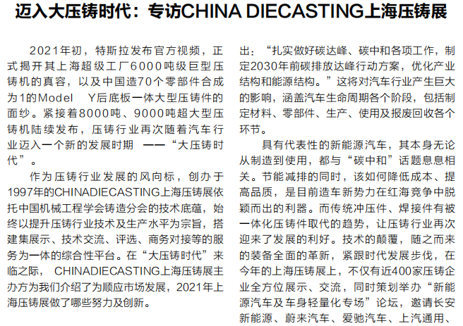 官方展覽報,由主辦方中國機械工程學會鑄造分會、《壓鑄周刊》聯(lián)合推出。