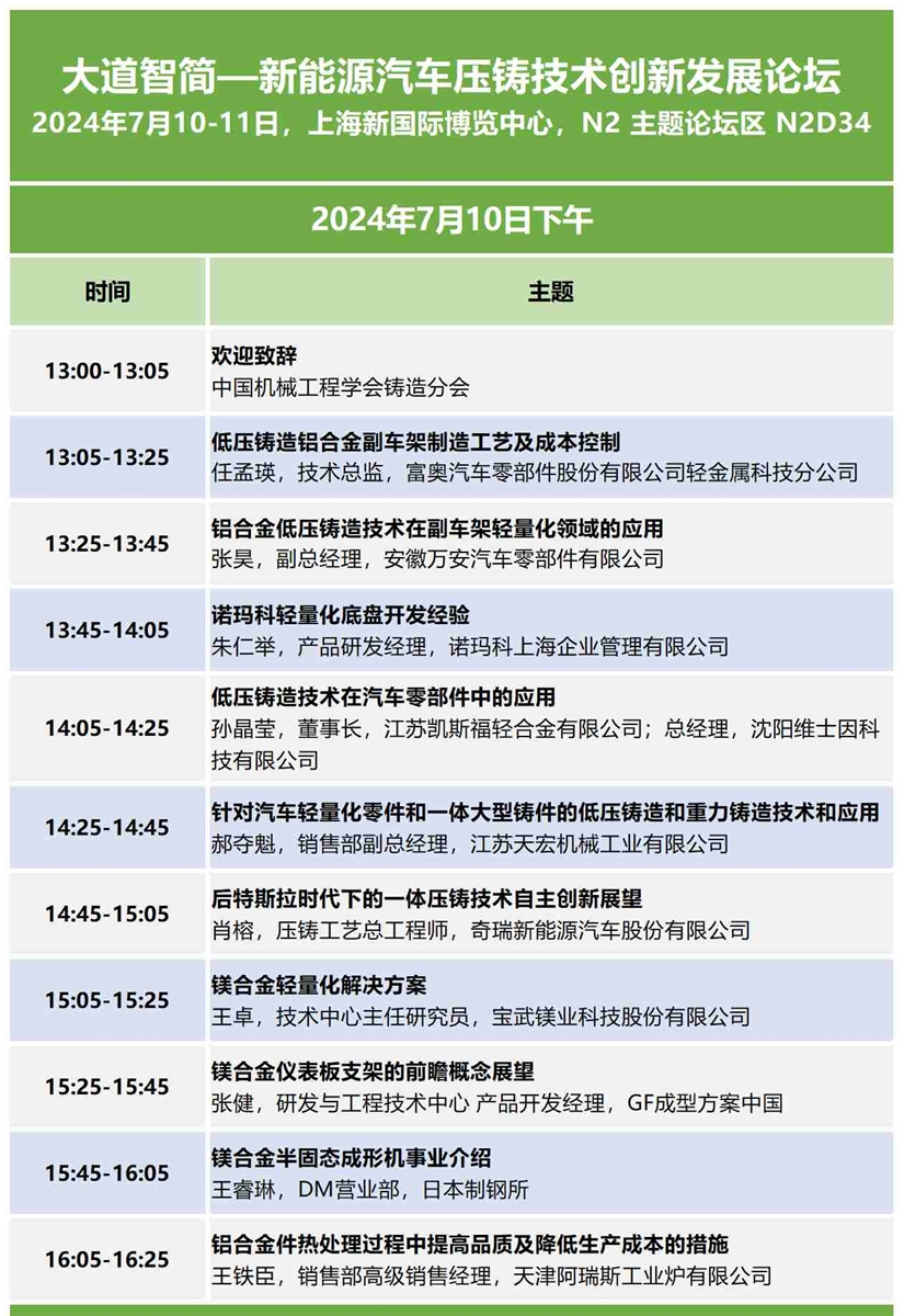 ![]() 2024上海國際有色壓鑄展 (CID & CNF) 順應”新能源汽車發(fā)展構(gòu)建壓鑄全球化新格局“的新趨勢,同期舉辦“大道智簡—新能源汽車壓鑄技術創(chuàng)新發(fā)展論壇”,論壇聚焦副車架、鎂合金、數(shù)字化、大型一體化壓鑄、低碳可持續(xù)等行業(yè)熱點話題,近三十場精彩報告將在7月10-11日,上海浦東新國際博覽中心為您呈現(xiàn)! 新能源汽車壓鑄技術創(chuàng)新發(fā)展論壇 副車架生產(chǎn)工藝技術專題
