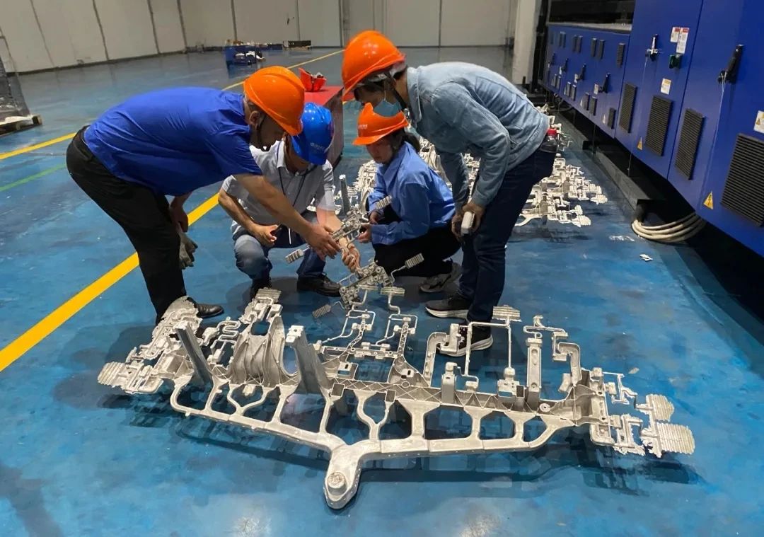 6500T超大型壓鑄島交付儀式。圖源:宇部集團(tuán) 此外,據(jù)了解,今年 3 月 17 日,宇部興產(chǎn)機(jī)械順利向日本利優(yōu)比Ryobi 公司位于靜岡縣菊川市的工廠交付了首臺超大型壓鑄機(jī)。這臺超大型壓鑄的機(jī)型為 UB6500iV2,合模力 6500T。 廣西汽車鎂合金半固態(tài)壓鑄CCB試制成功 近日,廣西汽車集團(tuán)旗下五菱工業(yè)在輕量化技術(shù)領(lǐng)域取得重大進(jìn)展——儀表板橫梁支架(CCB)鎂合金半固態(tài)壓鑄首次試制成功。此次試制產(chǎn)品采用鎂合金注射成型機(jī)與半固態(tài)成型工藝,長度超過1.5米,單次鎂合金注射量超過8kg,成品重量僅4.6kg。