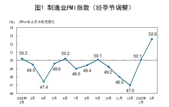 江蘇嶸泰股份副總經理張偉中介紹,“今年以來,新能源訂單大幅增長,同比增加50%以上,目前公司一期產能已經飽和,二期項目的快速推進,將解決我們產能不足的壓力,預計在二季度進行試生產,下半年進入批量生產,今年二期項目有望實現產值2個億。”該項目分兩期建設,項目全部建成達產后,可形成年產新能源汽車鋁合金精密壓鑄件410萬件。 2月我國制造業PMI為52.6% 國家統計局公布數據,2023年2月,制造業采購經理指數(PMI)為52.6%,比上月上升2.5個百分點,高于臨界點,制造業景氣水平繼續上升。2月,綜合PMI產出指數為56.4%,比上月上升3.5個百分點,高于臨界點,表明我國企業生產經營景氣水平繼續回升。