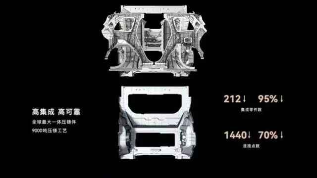 沃爾沃公布的汽車后底板一體化壓鑄技術 此次沃爾沃IPO募集的資金將主要用于沃爾沃汽車全面加速電動化和智能化的轉型。其中,募集資金將用于電動化轉型,包括在工廠中添置大型壓鑄機,以及生產一體壓鑄成型的車身,以及新增電驅動和內置電池的生產線等,募集資金還將用于提高其制造能力等。此次IPO完成后,浙江吉利控股集團(“吉利控股”)仍為沃爾沃汽車第一大股東。 華為問界M9采用9000T壓鑄機生產一體壓鑄后車體 9月25日,在華為秋季全場景新品發布會,華為常務董事、終端 BG CEO、智能汽車解決方案 BU 董事長余承東在發布會現場表示,年底華為將重磅推出新車——問界M9。