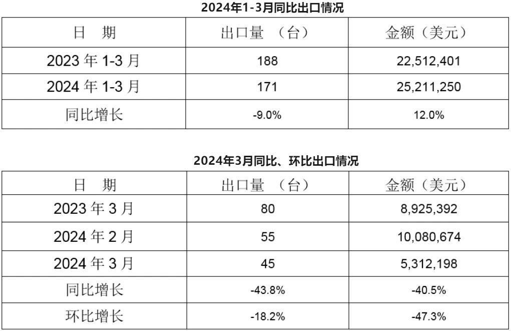 湖北銳美作為江蘇銳美在華中地區的重要戰略布局,建設的年產5萬噸汽車零部件項目,引進先進的低壓鑄造設備和技術,為新能源汽車零部件的輕量化、一體化鑄造提供了堅實的技術支撐。 1-3月我國冷室壓鑄機出口171臺 來自中國鑄造協會的消息,根據海關數據統計,2024年1-3月,我國冷室壓鑄機共計出口171臺,同比下降9%。其中:3月冷室壓鑄機出口45臺,同比下降43.8%,環比下降18.2%。