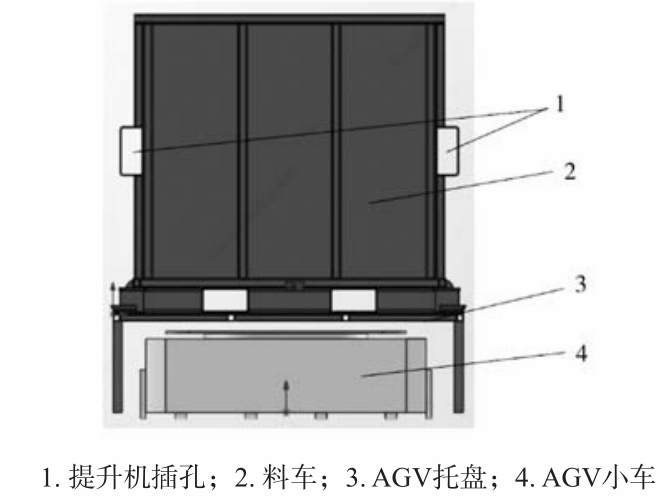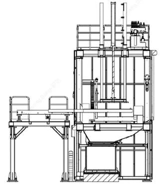 圖5 熔化保溫爐示意圖 圖6所示,熔化爐上料采用AGV的方式,主要構成有AGV小車,托盤和料車,料車底部帶有叉車孔,方便叉車上下料,側面的叉車孔和熔化爐投料提升機鏈接,可以提升料車,實現無人化操作。