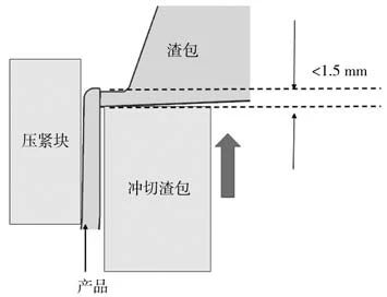 圖10 去渣包原理圖 2.5 等離子切割站 圖11為等離子切割站示意圖,采用倒掛機器人搬運等離子切割槍頭,對產品的澆道進行切割,澆道去除后,掉入AGV小車中,去渣包AGV小車,等離子切割小車及熔爐的小車規格一致,可以實現去渣包料餅直接通過AGV進行投料到熔爐中,實現物料循環,不需要人工轉運。如圖5所示。圖12為切割澆道的分界線。由于等離子切割在切割過程中,本體必須連續,因此,模具設計時,需要把澆道前端鏈接在一起,這樣既保證了不斷弧,又不切傷產品。