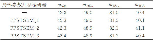 表2 基準模型在采用不同局部參數(shù)共享雙路編碼器的結(jié)果
