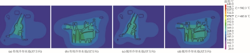 圖11 模具沿(XY、XZ)方向切片溫度圖