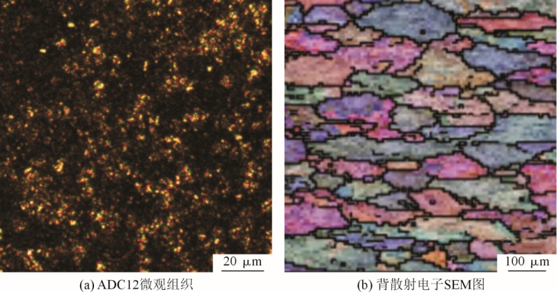 圖13 鑄件縮松縮孔預測圖 將模擬驗證最優冷卻方案的隨形冷卻鑲塊安裝到模具上,采用海天HDC400壓鑄機進行實際生產,后處理去除溢流槽后的鑄件見圖14。從外觀能夠初步判斷該鑄件具有較好的表面粗糙度,無明顯翹曲變形。對圖14水泵壓鑄件分成4個區域進行X射線探傷,觀察鑄件內部是否產生縮松縮孔缺陷,結果見圖15,可以看出鑄件內部無缺陷。在水泵座深腔頂部取樣,見圖3a圓圈所示。線切割機切割并用XQ-1鑲嵌試樣,用300~1000目砂紙打磨后用拋光布和W1及W2.5金剛石研磨劑在金相試樣磨拋機上拋光,用體積分數為0.5%的HF腐蝕,靜置3~5s后用無水乙醇清洗干凈并用吹風機吹干。使用蔡司AxioVertA1光學顯微鏡觀察顯微組織。使用蔡司EVO18型掃描電鏡進行SEM觀察。組織分析見圖16。