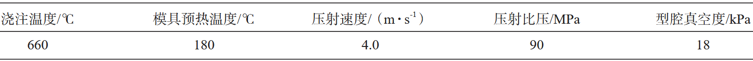 圖2 澆注系統(tǒng)三維圖 根據(jù)壓鑄工藝手冊,初步選取工藝參數(shù)如表2所示。
