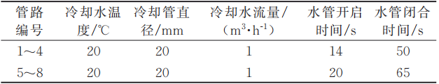 圖3 冷卻系統 表1 冷卻系統工藝參數