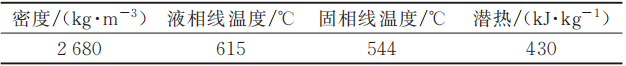 圖2 后副車架低壓鑄造澆注系統 由于鑄件外側的4個圓環狀車身安裝點的厚度要遠大于其余部位處的厚度,在鑄造過程中容易在該處產生熱節,從而形成縮松縮孔缺陷。所以,在這些部位預先設置了冷卻系統,見圖3。冷卻系統的相關參數設置見表1。 數值模擬所用的A356鋁合金的物性參數見表2。在模擬中,設置金屬液與模具、金屬液與砂芯、模具與砂芯界面傳熱系數分別為2 000、750和300 W/(m2·K),模具與空氣的傳熱系數為10 W/(m2·K)。 初始方案中澆注溫度為700 ℃,模具預熱溫度為320 ℃。通過ProCAST軟件模擬得到初始方案在8.56 s時完成升液,在12.21 s時完成充型,由此可認為壓力和時間參數設置合理。根據模擬結果得到初始方案的孔隙體積為0.189 cm3,孔隙率為1.69%,最大二次枝晶臂間距為42.89 μm,鑄件完全凝固用時為146.76 s。初始方案的數值模擬結果見圖4。
