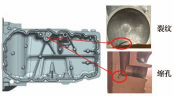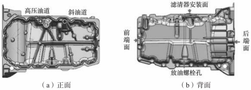 ![]() 原標(biāo)題:油底殼壓鑄工藝設(shè)計(jì)及其改善 摘要 根據(jù)汽車發(fā)動(dòng)機(jī)油底殼結(jié)構(gòu)進(jìn)行壓鑄工藝設(shè)計(jì),利用CAE模擬軟件進(jìn)行數(shù)值模擬,通過(guò)優(yōu)化高壓點(diǎn)冷及流道方案,結(jié)合模具溫度場(chǎng)的分析與控制,實(shí)現(xiàn)油底殼熱節(jié)位置縮孔、泄漏問(wèn)題的改善,提升了產(chǎn)品質(zhì)量,滿足了批量生產(chǎn)條件。 油底殼作為汽車發(fā)動(dòng)機(jī)的重要零部件,安裝在發(fā)動(dòng)機(jī)底部。其主要功能是存儲(chǔ)機(jī)油并封閉曲軸箱,同時(shí)保護(hù)發(fā)動(dòng)機(jī)下部的油路組件。油底殼具備較強(qiáng)的耐磨和抗沖擊能力,能夠起到緩沖和分散碰撞力的作用,還可以防止發(fā)動(dòng)機(jī)油液泄漏,保持發(fā)動(dòng)機(jī)內(nèi)部的正常工作溫度。油底殼的密封、儲(chǔ)油和吸油功能中的任何一項(xiàng)喪失都將造成發(fā)動(dòng)機(jī)嚴(yán)重?fù)p壞。新一代的汽車發(fā)動(dòng)機(jī)油底殼零件結(jié)構(gòu)復(fù)雜、壁厚不均和氣密性要求高,在壓鑄過(guò)程中會(huì)出現(xiàn)渦流裹氣、金屬液難以均勻補(bǔ)縮現(xiàn)象,導(dǎo)致鑄件內(nèi)部存在氣孔、縮孔等缺陷,容易造成零件廢品率高、成本浪費(fèi),需對(duì)壓鑄工藝進(jìn)行深入分析和持續(xù)改進(jìn)。 01 零件結(jié)構(gòu)及技術(shù)要求 圖1為某汽車發(fā)動(dòng)機(jī)油底殼結(jié)構(gòu)示意圖,材質(zhì)為鋁合金ADC12,尺寸輪廓約427 mm×310 mm×165 mm,重量約3.4kg,平均壁厚3.3 mm。鑄件整體結(jié)構(gòu)較為復(fù)雜,屬于六面加工體,中間布滿交錯(cuò)的加強(qiáng)筋,周邊功能區(qū)域有10~20 mm不等的局部壁厚處。鑄件成形模塊除動(dòng)、定模芯外,還包含3組滑塊抽芯。鑄件投影面積約1 145 cm2,需采用1650T壓鑄機(jī)設(shè)備來(lái)進(jìn)行生產(chǎn)。零件表面不允許有裂紋、欠鑄、機(jī)械損傷及任何穿透性缺陷。高壓油道密封面、濾清器安裝面氣孔要求≤0.3 mm,其余一般加工面氣孔要求≤0.5 mm。鑄件內(nèi)部孔隙按ASTM E505 2級(jí)標(biāo)準(zhǔn)執(zhí)行。高壓油道孔和內(nèi)腔分別要求在0.4 MPa和0.2 MPa壓力下,保壓25 s,其泄漏值分別≤1.0 mL/min和≤4.0 mL/min。