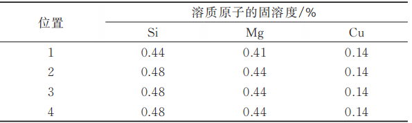 圖6 不同固溶時間下半固態壓鑄Al-Si-Fe-Mg合金的EMPA組織 表2 Si、Mg和Cu元素在基體中的固溶度