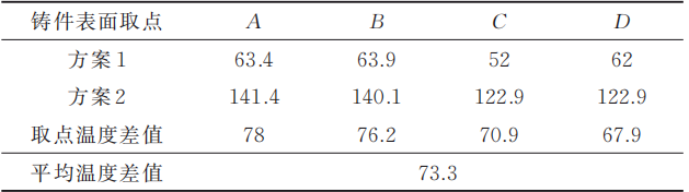 圖5 鑲件溫度模擬對比圖 表1 鑲件取點溫度對比數(shù)據(jù)表(%)