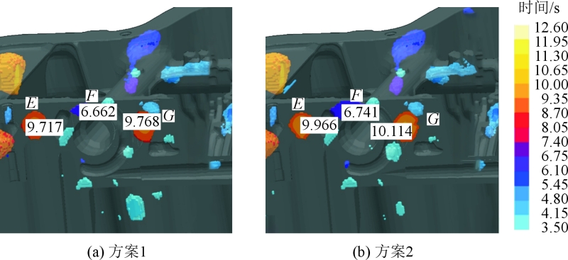 圖8 2種方案的氣壓對比圖 表4 氣壓對比數(shù)據(jù)表