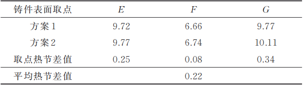 圖6 熱節(jié)模擬對比圖 表2 取點熱節(jié)對比數(shù)據(jù)表