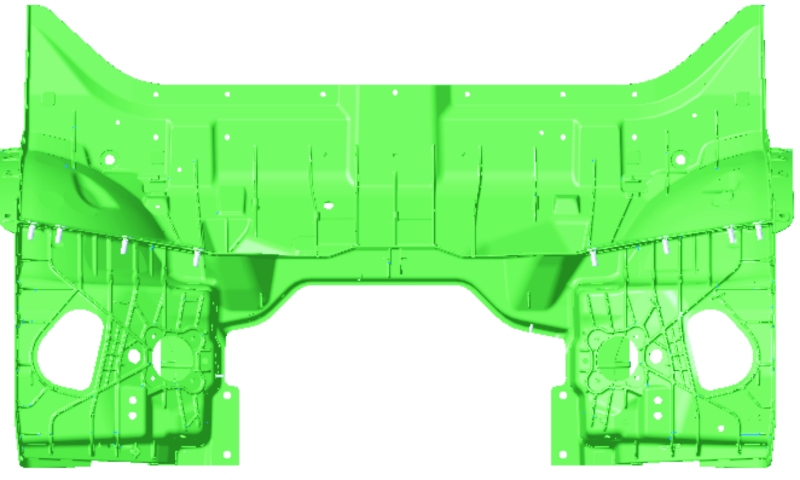 ![]() 原標(biāo)題:超大型一體化前艙壓鑄件機(jī)加工技術(shù)研發(fā)及應(yīng)用 當(dāng)前,輕量化、低碳化和高度集成化成為當(dāng)前汽車制造的重要發(fā)展趨勢。作為一種新型制造技術(shù),一體化壓鑄憑借生產(chǎn)效率高、產(chǎn)品質(zhì)量穩(wěn)定、制造成本低等優(yōu)勢,被廣泛應(yīng)用于汽車零部件的生產(chǎn)。然而,在一體化壓鑄過程中,鑄件往往會因?yàn)槭湛s、變形等因素,難以一次性達(dá)到所需的高精度尺寸要求。為確保鑄件的裝配尺寸,如安裝面、安裝孔、螺紋的位置和尺寸等,能夠嚴(yán)格符合設(shè)計標(biāo)準(zhǔn),滿足與汽車其他相關(guān)部件的精密裝配需求,一體化壓鑄件必須經(jīng)過后續(xù)的機(jī)加工處理。 一體化壓鑄件結(jié)構(gòu)復(fù)雜,其中前艙、后地板、電池托盤等零件不僅尺寸大,而且加工特征種類和數(shù)量多,特征擺放角度多,給機(jī)加工帶來了諸多挑戰(zhàn)。在保證加工尺寸精度和表面質(zhì)量的同時提高加工效率及穩(wěn)定性成為亟待解決的難題。國內(nèi)一體化壓鑄機(jī)加技術(shù)的應(yīng)用最早可以追溯到特斯拉上海工廠在Model Y車型后地板的生產(chǎn)中,此后,蔚來、小鵬、高合、賽力斯等造車新勢力,以及長安汽車、大眾、沃爾沃等傳統(tǒng)車企紛紛跟進(jìn),開始積極布局和規(guī)劃相關(guān)技術(shù)的應(yīng)用。從總體情況來看,盡管國內(nèi)車企在一體化壓鑄機(jī)加技術(shù)方面取得了一定進(jìn)展,但真正實(shí)現(xiàn)批量生產(chǎn)的應(yīng)用案例仍然相對較少。 前艙作為一體化壓鑄件的主要組成部件,其內(nèi)部集成了冷卻系統(tǒng)、發(fā)動機(jī)控制單元、電氣系統(tǒng)等重要組件,因此對其結(jié)構(gòu)強(qiáng)度、密封性和加工精度有著極高的要求。目前,國內(nèi)已有部分車企在積極布局與規(guī)劃前艙的一體化壓鑄機(jī)加工應(yīng)用技術(shù)。然而,國內(nèi)外現(xiàn)有的針對前艙的機(jī)加工方式仍存在諸多不足。如采用龍門加工中心、機(jī)器人加工、組合機(jī)床(多軸鉆)及激光切割等多工序組合的加工方式,不僅裝夾次數(shù)多,容易積累加工誤差,導(dǎo)致尺寸穩(wěn)定性低和劃碰傷風(fēng)險高,而且生產(chǎn)線上機(jī)械人手爪數(shù)量多,成本高昂。此外,多臺設(shè)備串聯(lián)加工的方式也面臨著因故障及調(diào)試問題對整線產(chǎn)能的影響大、過程轉(zhuǎn)型切換復(fù)雜、時間長等挑戰(zhàn)。 基于此,本研究深入剖析前艙機(jī)加工技術(shù)的實(shí)際應(yīng)用現(xiàn)狀,針對當(dāng)前存在的技術(shù)瓶頸和挑戰(zhàn)提出高效、優(yōu)質(zhì)和低成本的加工方案。 圖文結(jié)果 前艙壓鑄零件見圖1。該零件輪廓尺寸為1 650 mm×950 mm×630 mm,質(zhì)量約為57 kg,具有顯著的中間對稱性,且包含210個加工特征,包括28個螺紋孔、136個光孔以及46個加工面;鑄件最高位置精度為基準(zhǔn)孔位置精度,為±0.1 mm。基于以上分析可得,相比其他產(chǎn)品,一體化鑄件前艙的機(jī)加工難點(diǎn)主要體現(xiàn)在兩個方面:尺寸巨大、加工特征極多,對加工設(shè)備的行程要求極大,且要考慮高效加工;復(fù)雜、深腔結(jié)構(gòu)需求的加工擺放角度達(dá)到了20個以上。尺寸大且精度較高,最高位置精度為±0.1 mm,且夾具尺寸及質(zhì)量增大,為保證高效加工,夾具需要減重;前艙的材料為免熱處理鋁合金材料,此材料偏軟、伸長率高,導(dǎo)致加工切削力大、易粘刀和熱變形,對刀具要求高。因此,本項目的目標(biāo)加工設(shè)備需要滿足大行程、多角度、高剛性及加工效率高等技術(shù)要求,加工夾具需要提升加工剛性才能保證加工效率。