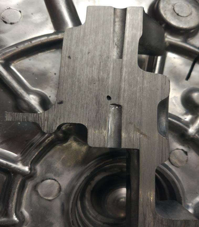![]() 原標(biāo)題:鋁合金壓鑄件縮孔分析及對策探究 縮孔是鋁合金壓鑄件常見的內(nèi)部缺陷,常出現(xiàn)在產(chǎn)品壁厚較大或者易形成熱點(diǎn)的位置。一般來講,只要縮孔不影響產(chǎn)品的使用性能,都以合格的方式來判定。然而,對于一些重要部位,如汽車發(fā)動機(jī)汽缸體的冷卻水道孔或潤滑油道孔,出現(xiàn)縮孔是不允許判定合格的。 某企業(yè)的一款鋁合金制發(fā)動機(jī)曲軸箱,采用布勒28 000kN冷室壓鑄機(jī)鑄造,材質(zhì)為ADC12合金,成分見表1。鑄件毛坯質(zhì)量為6.3 kg,后工序進(jìn)行X射線探傷時(shí)發(fā)現(xiàn)第二個(gè)曲軸軸承孔油道出現(xiàn)縮孔,離油道約8 mm,存在較大的漏油風(fēng)險(xiǎn)。據(jù)統(tǒng)計(jì),2017年該位置的縮孔報(bào)廢率為5%,經(jīng)過一系列的探索,成功地將廢品率降低為0.2%。 本課題從鋁合金壓鑄件縮孔的形成機(jī)理[1-5]和鑄造條件兩方面出發(fā),分析鑄件產(chǎn)生縮孔的原因,尋求改善措施,以期為日后解決鋁合金壓鑄件縮孔問題提供參考。
