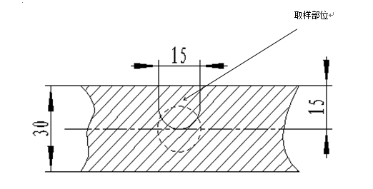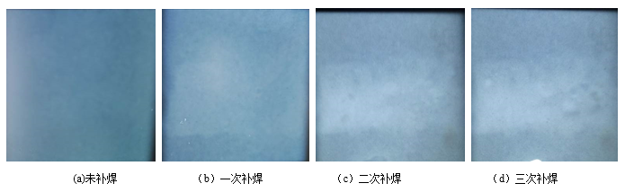 圖4 取樣部位示意圖 二:試驗結果分析 焊接接頭的無損檢測 圖5為未補焊和補焊一次、二次、三次X射線探傷底片??梢钥闯?,每次焊接后,旱區與母材過渡良好,經X射線檢測符合HB963-2005Ⅰ類件要求,外觀檢查無宏觀缺陷,經熒光檢驗未發現超標缺陷。