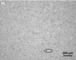 圖4首次試制得到鑄件的不同部位的壓鑄態力學性能 根據鑄件本體的力學性能結果,對1號、3號、5號和6號位置取樣并進行OM觀察,見圖5??梢钥闯?,所有位置的晶粒尺寸基本一致,其組織由細小的α-Al和共晶組織組成(見圖5c)。但1號、5號和6號部位試樣存在明顯的氣孔,尺寸從十幾μm到幾十μm不等(圓圈內所示),而3號部位試樣的顯微組織則未發現明顯的氣孔,這與模擬分析及X射線檢測的結果一致。氣孔是鋁合金壓鑄件常見的缺陷,其不僅使鑄件的有效受力面積減少,還會造成鑄件局部應力集中而成為裂紋源,最終嚴重降低合金的伸長率,一些不規則氣孔的出現,還會使合金的抗拉強度下降。