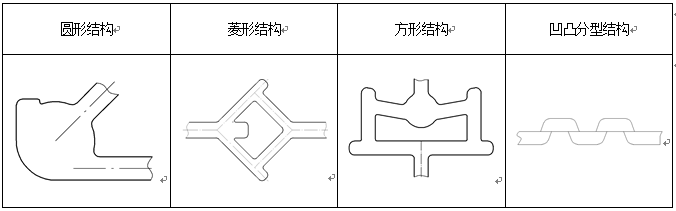 圖3:原方案模擬分析速度檢測示意圖 制定方案及優化方案 通過在排氣道的尾端增加減速結構,減小鋁液對真空閥的撞擊速度及沖擊力,排氣道減速結構的樣式除三角形減速結構外還有以下幾種,圓形減速結構、菱形減速結構、方形減速結構、凹凸分型減速結構等,見表1。