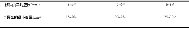 圖:3鑄型結構 金屬型的厚薄影響鑄型的強度、剛度、質量、壽命和鑄型的蓄熱、鑄件的冷卻速度等。對于熔點較低的輕合金鑄件,鑄件壁厚一般較薄,此時鑄件冷卻速度主要決定于金屬型的蓄熱能力,因此,增加金屬型的壁厚可提高鑄件的凝固速度,但增加到一定厚度后,凝固速度逐漸減弱甚至消失,一般約為20 mm,金屬型的蓄熱能力對鑄件的凝固速度沒有多大影響了。鑄型壁厚選取參考值見表2,根據δ型=(2.5~3)δ件件計算得出壁厚為21 mm,綜合考慮其他因素,取δ型=40 mm。