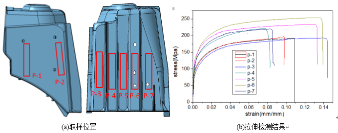 圖4:減震塔取樣位置區域及拉伸檢測結果