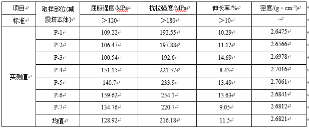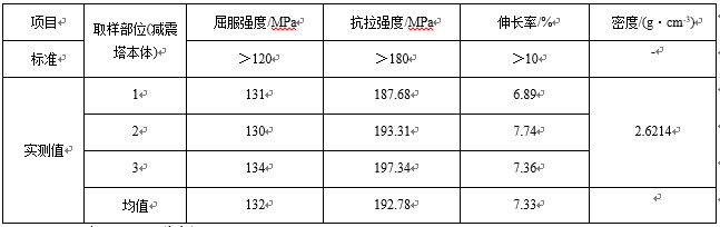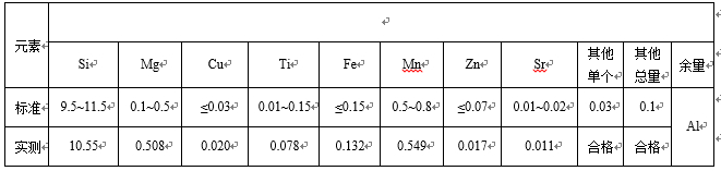 表1:真空高壓鋁合金減震塔(改善前)成分表 %