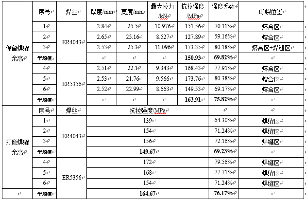 表4:真空壓鑄鋁合金減震塔(改善后)焊接力學性能