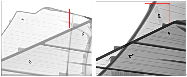 表2:真空高壓鋁合金減震塔(改善前)本體取樣力學性能 2.2 問題原因分析 減震塔的伸長率較低和熱處理后局部表面產生較大氣泡,導致不滿足使用要求。對圖2中的減震塔進行X-ray無損檢測,發現對應的起泡位置內部有明顯的氣孔缺陷,見圖3。對于氣泡的控制,可以通過以下幾方面進行:①優化模具設計,減少充型過程中的卷氣量,②降低澆注溫度,增加鋁液密度。提高伸長率可以通過:③優化熱處理工藝參數;④適當降低鋁液中的Mg含量。