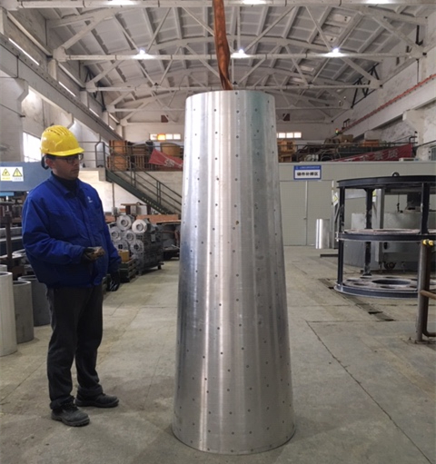 圖10:澆注的殼體鑄件 6、結論 (1)利用數值模擬手段驗證了大型耐熱鎂合金殼體澆注系統設計合理性,由直澆道、外圓形橫澆道、內“米”字形橫澆道及立筒縫隙澆道組成的澆注系統充型平穩,補縮良好。 (2)大型耐熱鎂合金殼體鑄造過程中易在殼體厚大部位、澆道前過熱區產生疏松、縮孔缺陷。 (3)采用低壓鑄造及合適的工藝參數澆注大型耐熱鎂合金殼體鑄件,可明顯改善疏松、縮孔缺陷,提升鑄件內部質量。