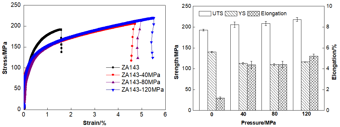 2.4 ZA143合金在不同壓力作用下的力學(xué)性能