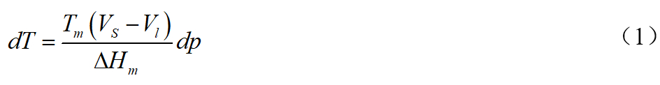 在壓力作用下ZA143合金組織得到細(xì)化,一方面是壓力使凝殼緊貼型壁,增加了二者界面的傳熱系數(shù),提高了熔體的冷卻速率,另一方面是壓力引起合金熔體物性參數(shù)的變化,提高熔體凝固過程中的形核率。壓力不僅會(huì)改變?nèi)垠w冷卻速率,而且還會(huì)改變?nèi)垠w的平衡凝固溫度。壓力對(duì)熔體平衡凝固溫度的影響可以用Clausius-Clapeyron方程描述: