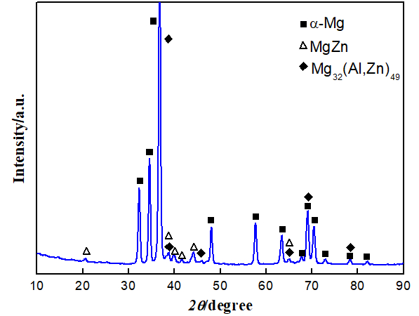 圖3:鑄態(tài)的Mg-14Zn-3Al合金XRD圖譜