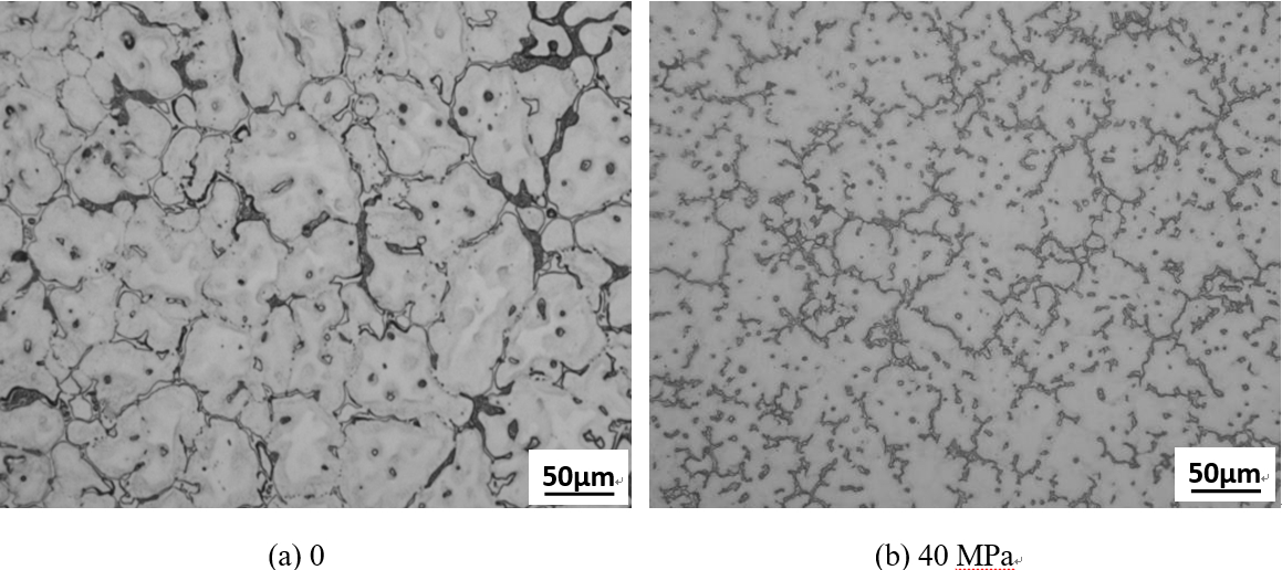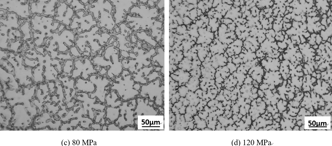 圖4:不同擠壓鑄造壓力下ZA143合金的凝固組織金相照片
