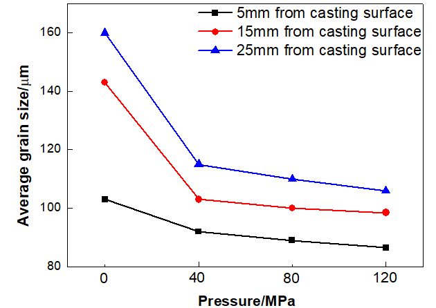 圖5:壓力對(duì)ZA143合金平均晶粒尺寸的影響