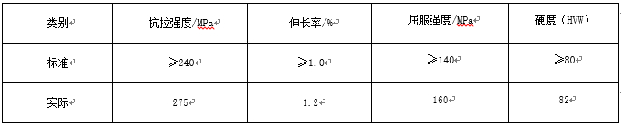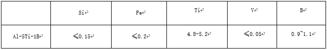 表2:AlSi9Cu3合金的力學性能 1.1.2 試驗用Al-Ti-B細化劑化學成分 選擇試驗用Al-Ti-B細化劑為Al-5Ti-1B,其成分見表3,在A化學成分穩定一致情況下進行試驗。