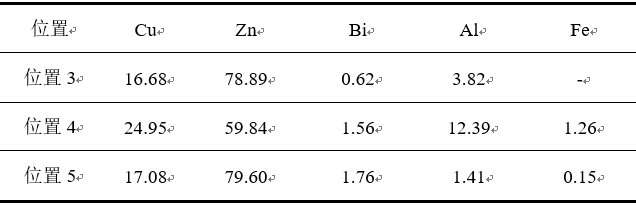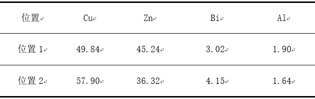 表1:鉍黃銅閥體零件正常部位處的化學成分wb/%