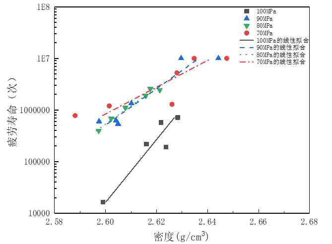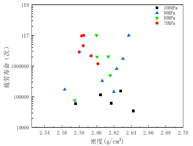 圖5:液態壓鑄試樣密度與疲勞壽命